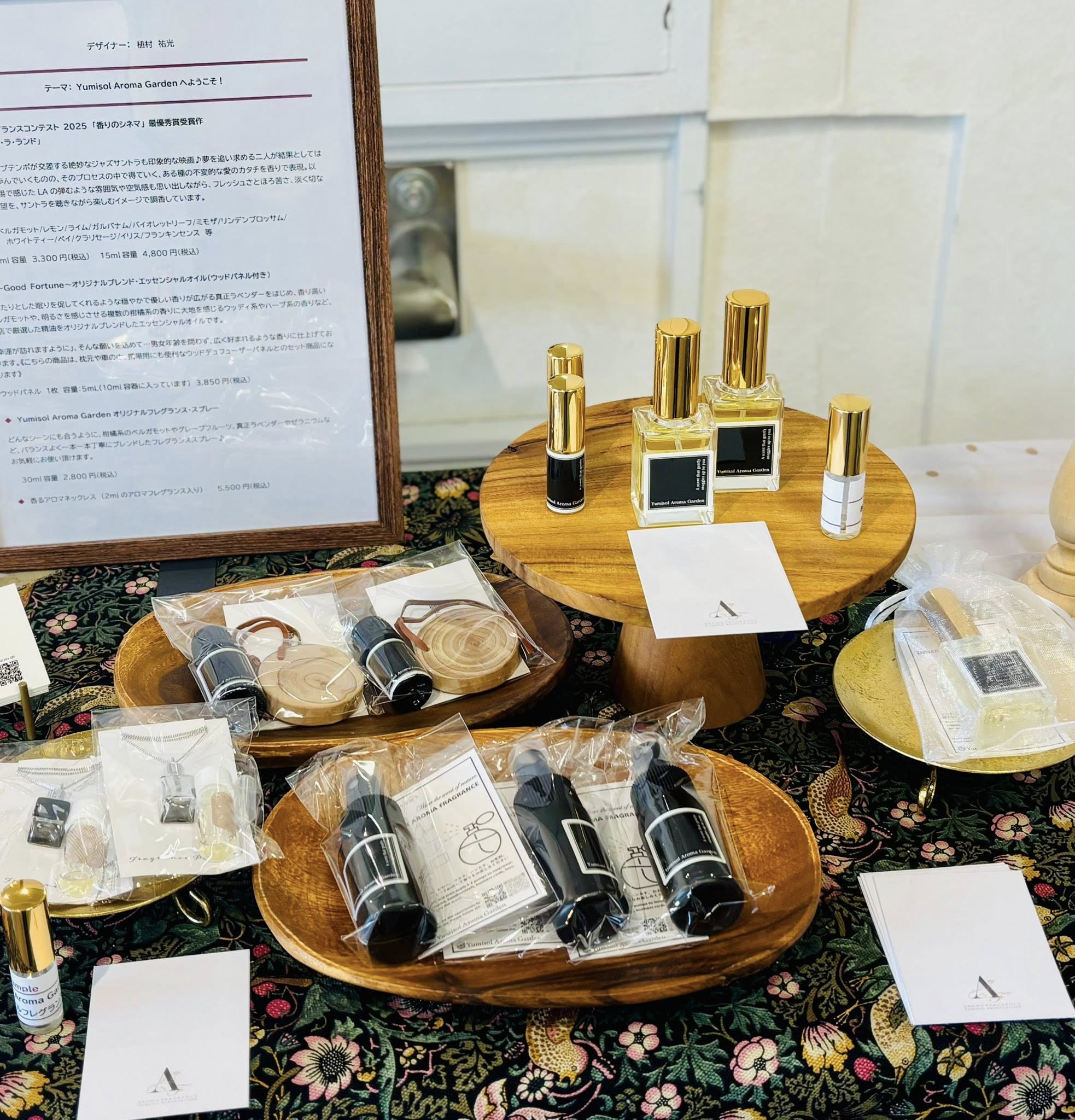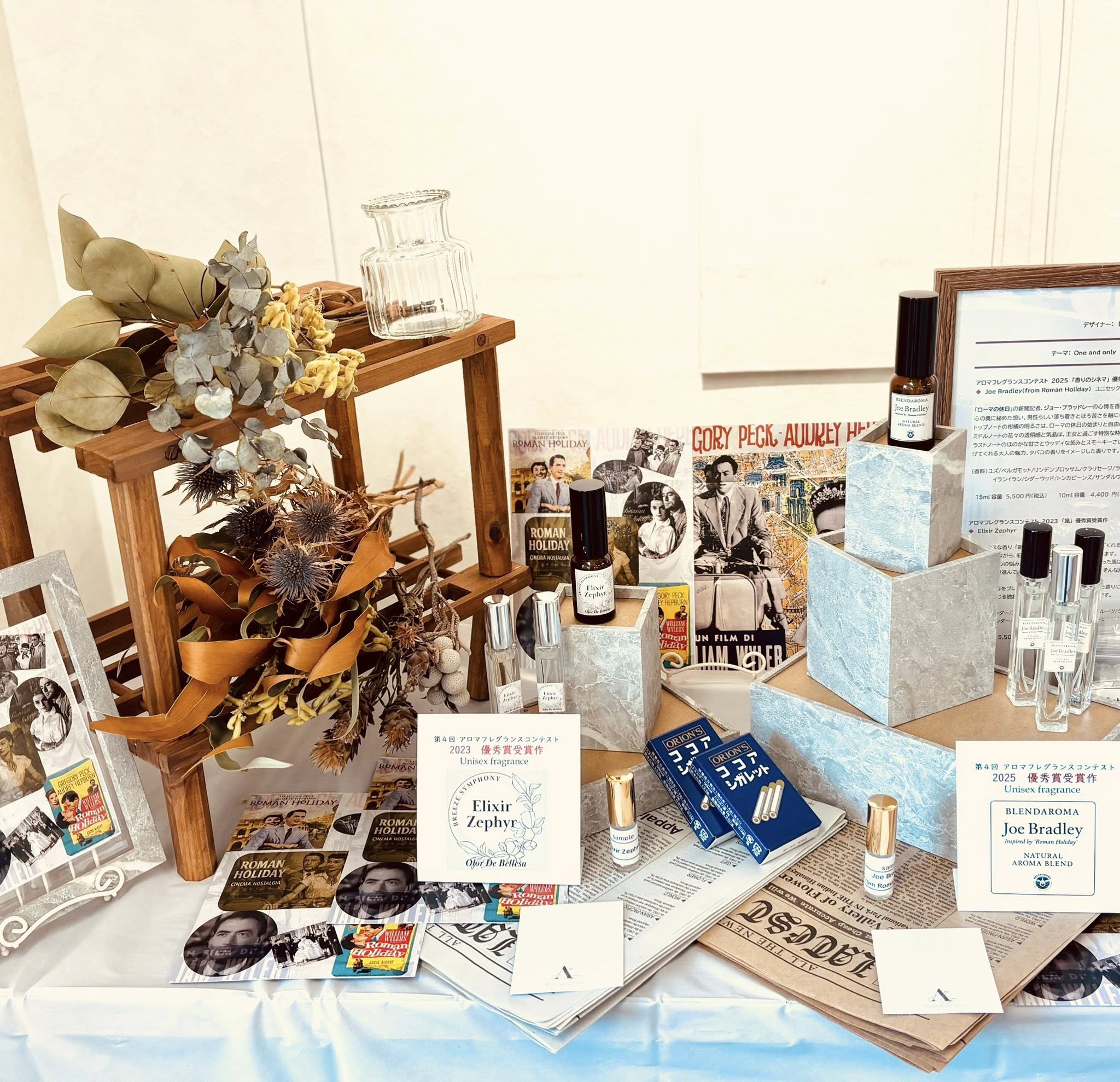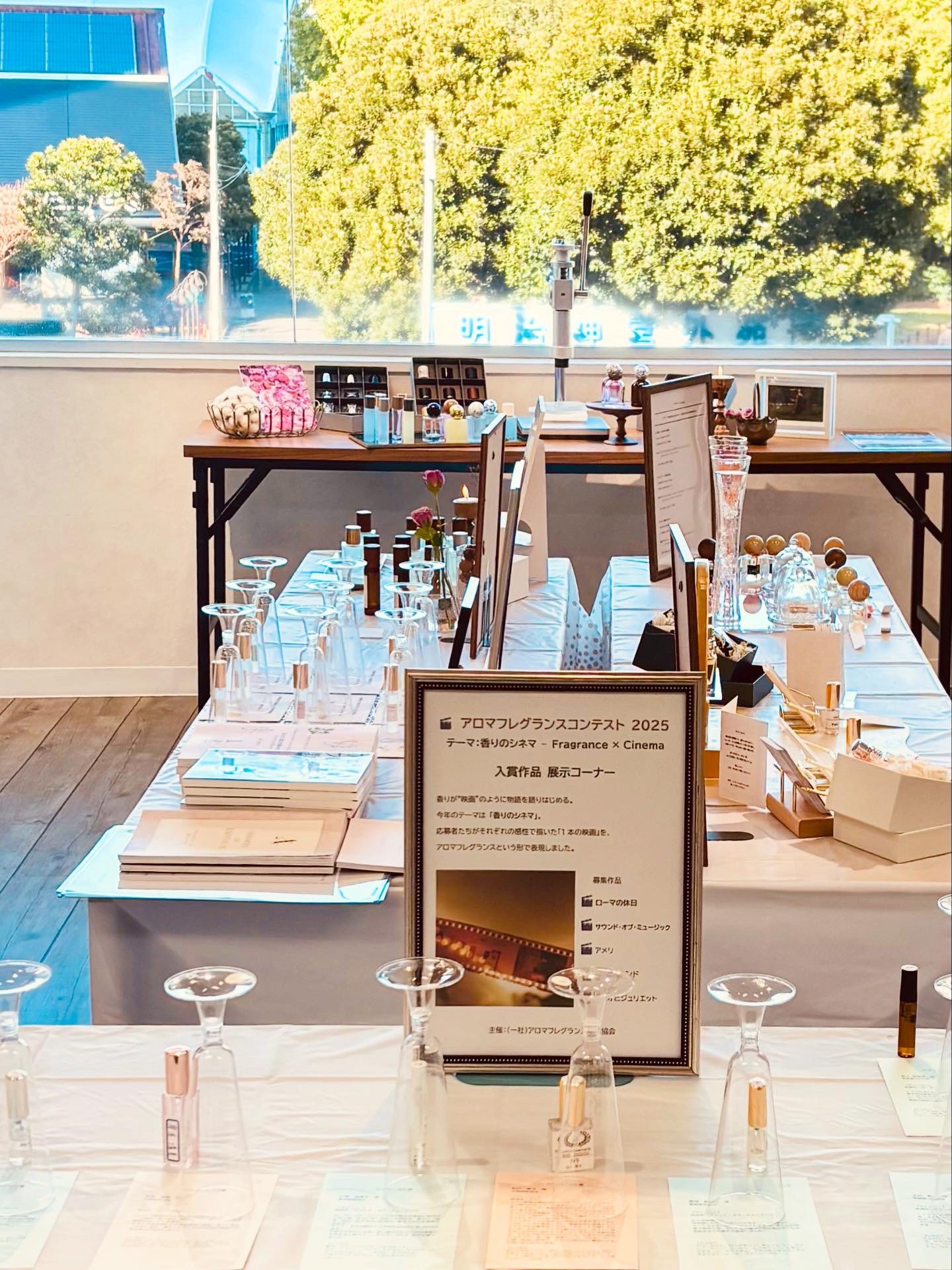 アロマフレグランスコンテスト2025 「香りのシネマ」入賞作品の展示コーナーでは
